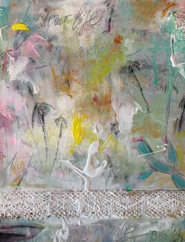 Con quest'opera, intendo evocare un senso di calore, amore e la magia che si cela nelle interazioni tranquille e tenere della vita. Le palme simboleggiano il paradiso.