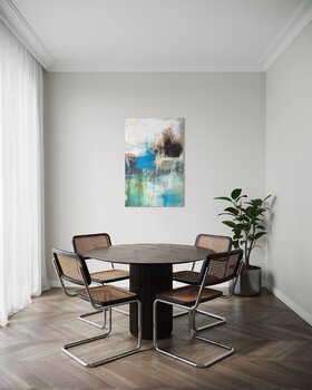 In quest'opera ho esplorato la tensione tra immobilità e movimento. I toni blu intensi rappresentano ampiezza e chiarezza, mentre le aree più scure e ad alto contrasto simboleggiano l'imprevedibile e il selvaggio. Sono affascinato da queste transizioni: dall'incompiuto, dal continuo cambiamento.