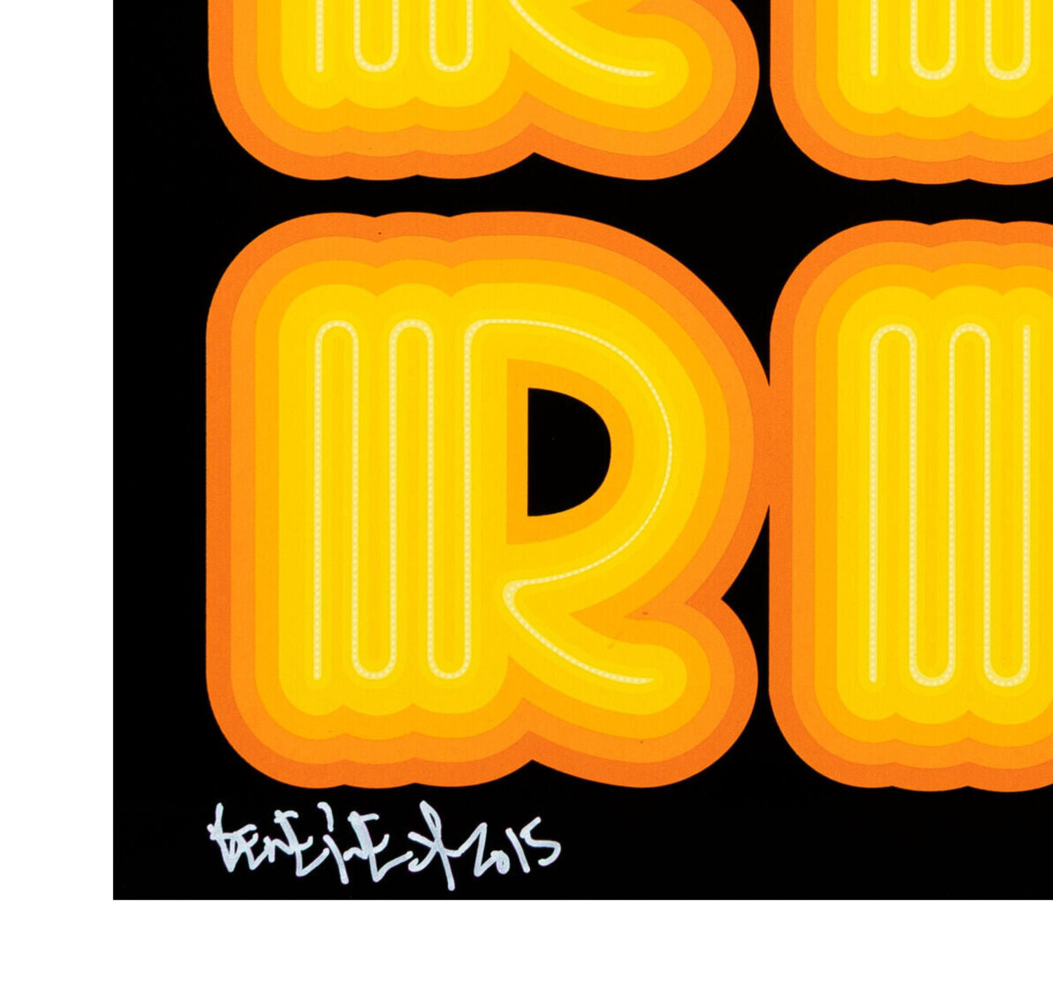 Ben Eine, un artista inglese stimato per il suo approccio pionieristico nell'arte tipografica, emana come tela uno sfondo ricco della vivacità delle strade di Londra. Impiega colori vivaci e forme di lettere audaci e fuori dal comune, intrecciando l'arte di strada con una precisione impeccabile che sfida i graffiti tradizionali. Le sue opere sono una giubilante esplosione di ottimismo, che invita gli spettatori a divertirsi in un mondo in cui linguaggio ed estetica si intrecciano in una deliziosa armonia.