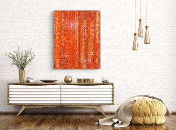 Nella mia arte, cerco una forma di espressione che catturi energia e passione. Questo dipinto, con i suoi toni forti e vibranti di arancione e rosso, racchiude il dinamismo e il calore che ardono nello spirito umano. Questo dipinto crea un'atmosfera di ispirazione e vitalità in ogni ambiente.