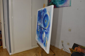 In questo lavoro ho utilizzato acrilici e oli per esplorare le profondità del blu, creando un'atmosfera che invita alla contemplazione e alla calma. Espressione astratta e tratti espressionisti guidano un'esperienza visiva che è allo stesso tempo rifugio e odissea emotiva. Ogni pennellata e ogni contrasto mira a risuonare con gli stati più profondi dell'anima, offrendo un pezzo che non solo decora uno spazio, ma lo trasforma in un santuario di calma… e riflessione. Questo dipinto è un dialogo continuo tra lo spettatore e il blues insondabile che racconta storie di serenità e profondità.