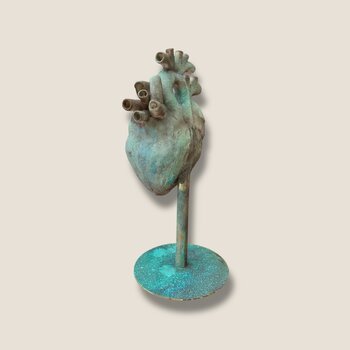 Cordis Aes è un cuore che rende visibile il cambiamento: porta le tracce del tempo sulla sua superficie, come un manufatto di un mondo dimenticato da tempo. Ho applicato deliberatamente la patina per creare un senso di usura e profondità, come se questo cuore fosse stato plasmato dal rame e toccato dalla natura nel corso degli anni.