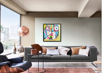Questo dipinto ha una storia unica da raccontare. Un giorno, mentre tornava dal suo studio, l'artista incontrò un giovane con la passione per l'arte. Dopo aver discusso di arte contemporanea, espresse la sua ammirazione per il suo dipinto, paragonandolo persino a un'opera di Kandinsky. Ma osservandolo più attentamente, notò qualcosa di strano: il contorno di un occhio chiuso sulla tela.