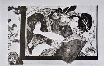 Litografia erotica giapponese da una stampa originale