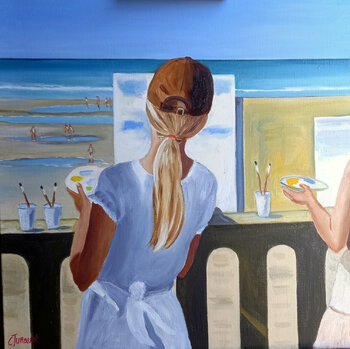 In questo dipinto a olio, ho voluto catturare il momento magico in cui la creazione si fonde con la dolcezza di una giornata al mare. Ho dipinto questa scena figurativa per trasmettere la pace interiore e l'ispirazione che si provano di fronte all'orizzonte infinito. Questa tela infonderà un'energia rilassante nei vostri interni, invitando alla fantasia e alla contemplazione.