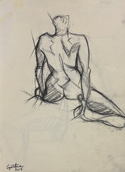 In quest'opera ho esplorato la tensione primordiale della forma umana attraverso linee nette e frammentate che richiamano il cubismo e l'intensità emotiva dell'espressionismo. Utilizzando carboncino e gesso su carta, ho cercato di catturare la vulnerabilità e la forza intrecciate. Quest'opera invita a percepire la complessa energia della figura, aggiungendo un impulso dinamico e stimolante a qualsiasi spazio in cui venga collocata.