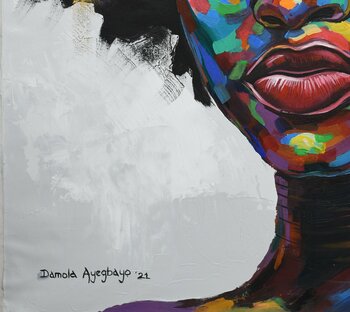 Damola Ayegbayo (nato nel 1988) è un artista visivo e pittore contemporaneo nigeriano. Autore di circa 1000 opere di pittura e arti visive, le sue opere sono esposte nella capitale dello Stato di Osun e al Museo Nazionale dell'Unità di Ibadan, oltre che in collezioni e mostre in tutto il mondo. Damola ha proseguito gli studi presso l'Università Obafemi Awolowo, dove ha conseguito una laurea triennale in Belle Arti e Arti Applicate (BA.Ed.). È stato inoltre candidato al JOM Charity Award, premio per coloro che dimostrano impegno in cause sociali, ambientali e umanitarie. È stato candidato al "Black Is An Honour Award" in Ruanda. Nel 2024, a Damola Ayegbayo è stato commissionato il lavoro artistico per il manifesto del film nigeriano "The Colour Purple". Nel 2023, la sua opera "Vision of Hope" è stata utilizzata per il documentario "HANDLE WITH CARE" di Jimmy Akingbola. La sua opera intitolata "Purpose of Existence" è stata utilizzata come copertina per una campagna per promuovere la salute mentale delle donne nere dalla Cambridge University Press.