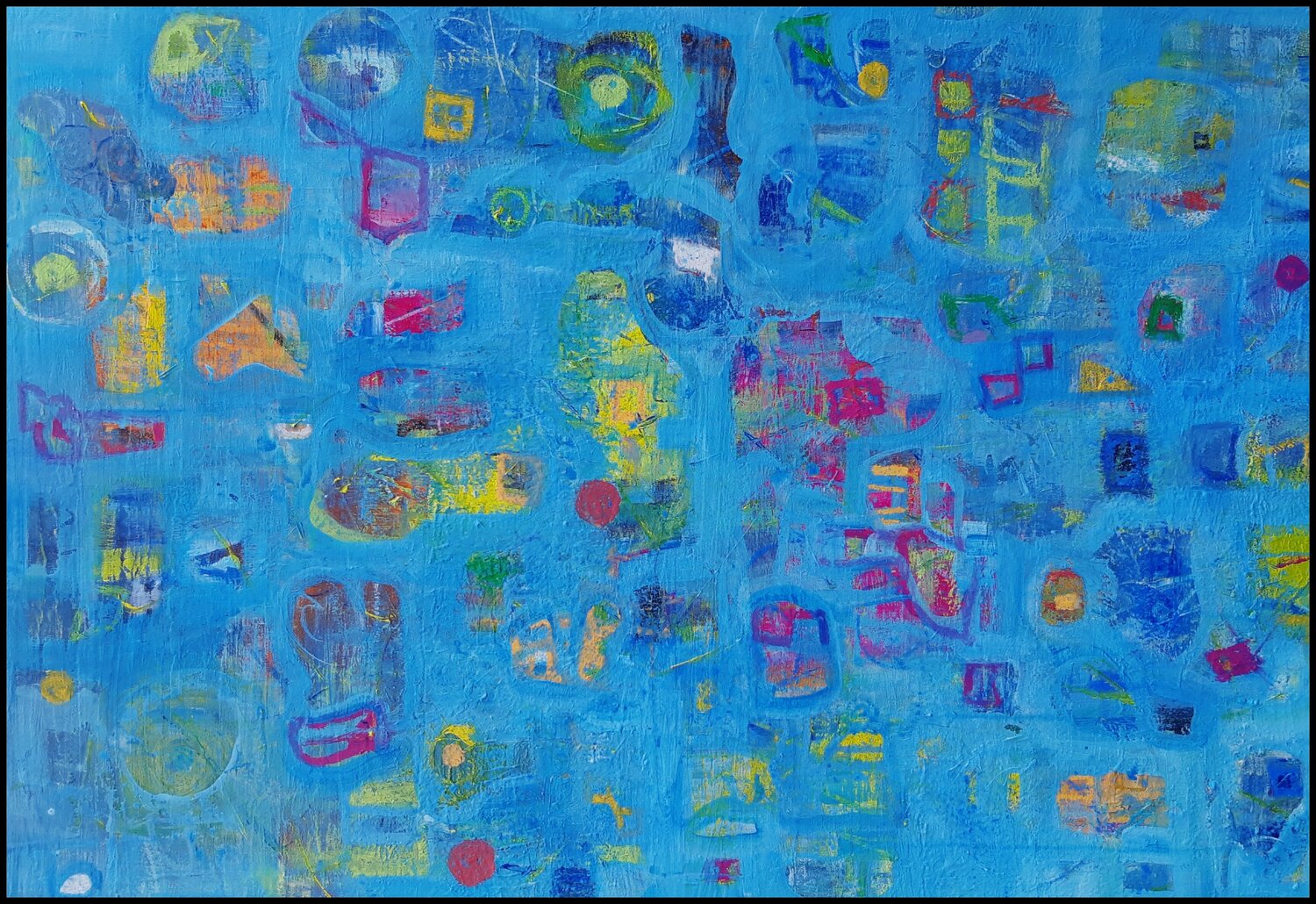 Quest'opera nasce da un profondo desiderio di catturare l'essenza fluttuante di pensieri e ricordi. Ho usato acrilico e gesso per giocare con texture e luce, creando un universo in cui forme astratte danzano su un rilassante sfondo blu. Invita alla contemplazione, a percepire l'energia silenziosa e misteriosa che anima ogni colore, donando un'atmosfera vibrante e serena al vostro spazio.