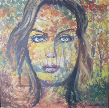 Quest'opera inaugura la serie intitolata "Madre Natura" ed è stata pubblicata sul catalogo della mostra collettiva "Scene da un mondo (ir)responsabile" dell'autunno 2023 . Ho dato vita a simboli e figurazioni, raccontando una storia arcaica di connessione e armonia. Quest'immagine rappresenta non solo un volto, ma l'essenza stessa dell'intreccio tra uomo e ambiente. Portando quest'opera nella tua casa, sentirai la forza vitale e l'energia ispiratrice… che evoca.