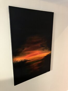 In quest'opera ho riversato tutta la mia passione nel catturare l'energia intensa e ardente di un tramonto che sfida l'oscurità. Attraverso pennellate acriliche decise, esprimo la potente emozione della natura, infondendo calore e speranza nell'ombra. Questo dipinto invita il vostro spazio a risplendere di resilienza e intensità, un radioso impulso di vita anche nel crepuscolo.