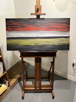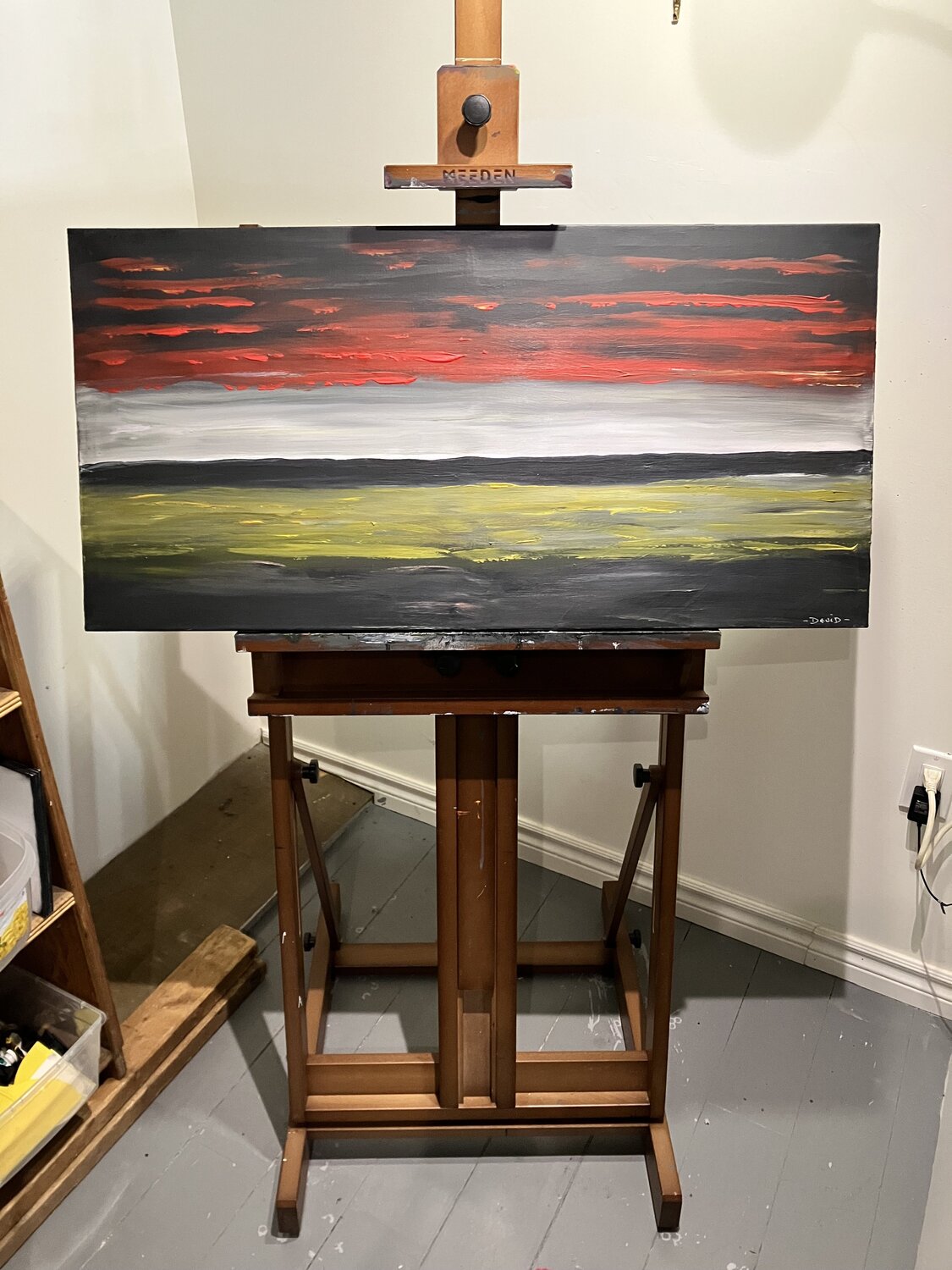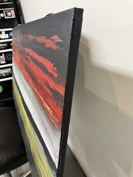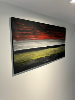 In questo dipinto espressionista acrilico, ho riversato le mie emozioni nel vasto e inquieto mare e nel cielo tempestoso. Le pennellate audaci e le tonalità intense catturano un momento di intensa riflessione ed energia indomita. Quest'opera porta un'atmosfera potente e contemplativa in ogni stanza, invitando a percepire sia la calma che il tumulto dello spirito della natura. È un viaggio visivo nelle emozioni più pure e negli orizzonti infiniti.
