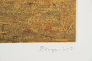 Firmato a mano dall'artista, edito, intitolato, firmato "D Frazer" e datato sotto l'immagine, timbrato con il sigillo della Port Jackson Press.