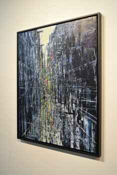 Questo dipinto è il risultato dell'assorbimento e della sintesi di elementi urbani esterni da parte di Tycho in descrizioni, reazioni e interpretazioni personali, attingendo alle proprie preoccupazioni formali con linea, forma, colore, gesto e consistenza. Sebbene l'ambiente costruito fosse utilizzato come punto di partenza, il dipinto si è evoluto e trasformato in modo intuitivo, fino a quando i riferimenti esterni sono stati integrati con narrazioni… e nozioni inconsce. In questo senso, il lavoro è una fusione di forze esterne e interne, per così dire. David utilizza sfacciatamente le tradizioni del marchio dell'espressionismo astratto, riformulandole con una sensibilità contemporanea.