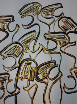 Dessein fonde le texture del feltro con la spontaneità dell'art brut e pattern geometrici intrisi di minimalismo; quest'opera è un inno alle radici aborigene, una danza visiva primitiva e contemporanea. Incarna un'energia accattivante che infonderà vita dinamica e profondità intrigante al tuo interno. Ogni linea è un passo di danza con l'anima, che unisce energia e mistero.