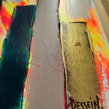 Scopri "Rain of Freedom", una tela astratta vibrante di energia e vitalità. Le gocce di pioggia, rappresentate da linee verticali lavorate a coltello, cadono a terra liberando l'artista da ogni vincolo per far emergere LA Liberté. I colori fluorescenti contribuiscono all'effetto dinamico e vivace del dipinto. Le onnipresenti linee verticali simboleggiano l'ascesa alla liberazione assoluta. Quest'opera richiama l'importanza di darsi il diritto di… amare, di esprimersi, di dubitare e di gridare, affinché uno "Spirito di Libertà" possa prendere forma con tutto il proprio "Essere". "Rain of Freedom" è il riflesso perfetto del "Design of Freedom" caro all'artista. Aggiungi questa opera d'arte alla tua collezione per vivere ogni giorno nello spirito di libertà.