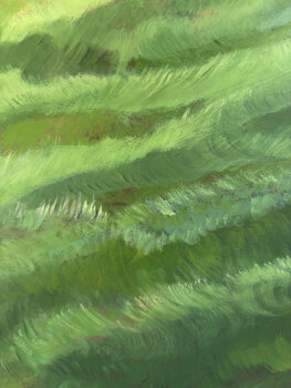 Poco a nord di dove vivo si trova la graziosa valle del Luberon. Il suo terreno è stato arricchito dal vicino fiume Durance, che, prima delle dighe, si allagava periodicamente. In primavera, il verde stagionale è ravvivato da una profusione di fiori di ciliegio. Vivendo nella terra di Van Gogh, non posso fare a meno di essere influenzato dalla sua opera. Anche lui ha sopportato il vento snervante del Maestrale, che periodicamente imperversa dalle… Alpi, sferzando la vegetazione e la nostra compostezza. Il campo rigoglioso, delineato da questa fila di ciliegi, implorava di essere dipinto.