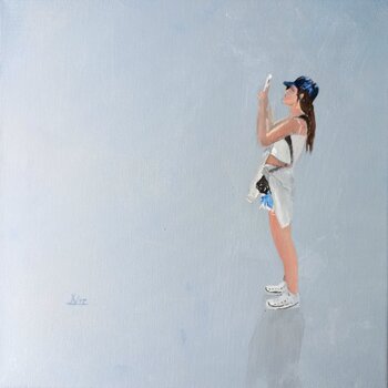 In quest'opera ho raffigurato una giovane donna che sta per scattare una foto.