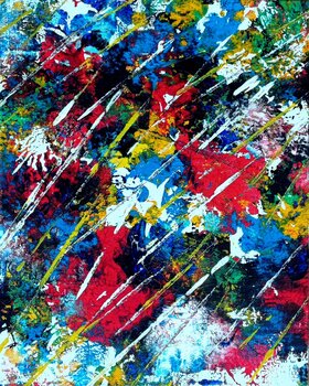 Nella mia opera "Fuochi d'artificio di colori" ho ravvivato la tela con tratti audaci di vernice acrilica.