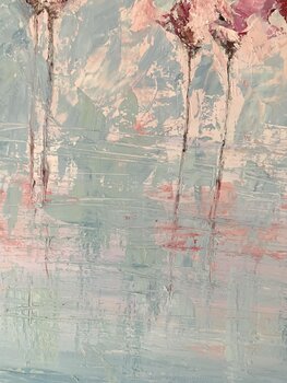 Nel creare quest'opera, ho voluto catturare l'eleganza e la grazia innata dei fenicotteri. Ho utilizzato l'olio per esplorare la fusione di colori vivaci, ispirandomi alla luminosità e all'energia che questi magnifici uccelli trasmettono. Questa pittura riflette un mondo di tranquillità e bellezza pura, evocando serenità e una sottile gioia di vivere nella tua casa. Le pennellate libere e l'uso di tonalità rosa e azzurre vogliono celebrare la vita… e l'arte nella loro forma più pura.