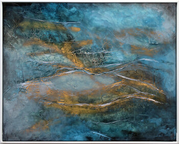 Lasciatevi trasportare dalle profondità atmosferiche di Golden Veins, un dipinto astratto dalla texture materica che cattura il ritmo della natura e la bellezza dell'imperfezione. Fluttuanti strati di acqua verde acqua e blu oceano si fondono con delicate crepe e scintillanti accenti dorati, evocando formazioni geologiche, paesaggi spazzati dal vento o antiche superfici plasmate dal tempo.… Quest'opera unica dell'artista Edelgard Schroer combina pennellate dinamiche con texture ricche per creare una superficie multidimensionale che invita a un'osservazione ravvicinata. Strutture screpolate e toni stratificati offrono un infinito interesse visivo ed evocano un senso di trasformazione organica. Incorniciato professionalmente con telaio bianco, Golden Veins è pronto per essere appeso e funge da accattivante elemento centrale in qualsiasi interno moderno o contemporaneo.
