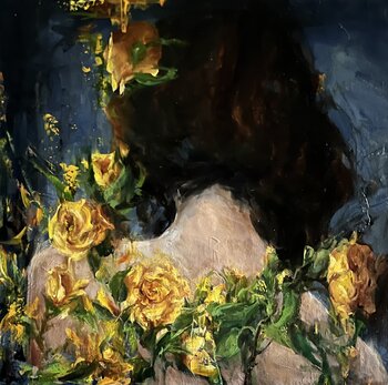 In questo dipinto a olio, ho riversato le mie emozioni nelle vibranti rose gialle che si intrecciano intorno alle spalle nude della figura, incarnando una delicata tensione tra fragilità e crescita. Le pennellate impressioniste creano un'aura misteriosa, invitando gli spettatori a provare sia solitudine che speranza. Quest'opera infonderà calore ed energia introspettiva in qualsiasi spazio, una silenziosa celebrazione della resilienza e della bellezza… che emerge dall'oscurità.