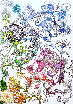 La tecnica dell'acquerello accentua il senso di fluidità e di crescita organica: strati trasparenti, sfumature delicate e linee vivaci creano l'impressione di un movimento costante. L'opera è percepita come una metafora visiva dell'infinito ciclo vitale.