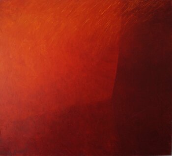 L'artista ha scelto deliberatamente di dipingere in una gamma di toni rossi.