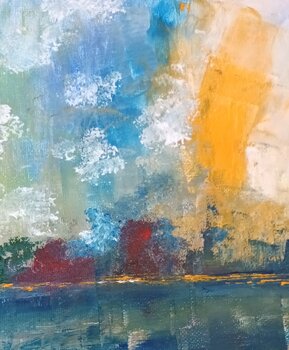 Nel creare quest'opera mi sono lasciato trasportare dalla passione per i colori vivaci e le texture. Ispirata dall'astrattismo e dall'espressionismo, la mia pittura gioca con riflessi e sfumature per evocare una scena paesaggistica dinamica ed emotivamente decisa. Pennellate morbide e tavolozze audaci invitano alla riflessione e infondono energia in ogni spazio, donandogli un senso di avventura e contemplazione.