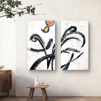 In quest'opera combino acrilico, inchiostro, polvere di marmo e foglia d'argento per creare una composizione espressiva. Le forme astratte e le linee dinamiche riflettono energia e movimento, creando un'atmosfera di libertà e libertà. L'uso potente del bianco e nero con un tocco di arancione simboleggia il contrasto e l'equilibrio: emozioni che creano una presenza sorprendente in ogni stanza.