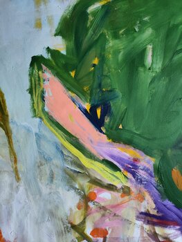 Ha lavorato in più strati con gesti intuitivi pieni di energia.