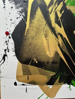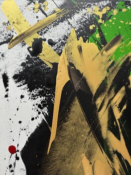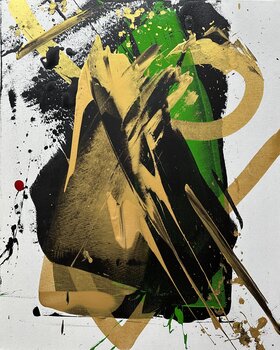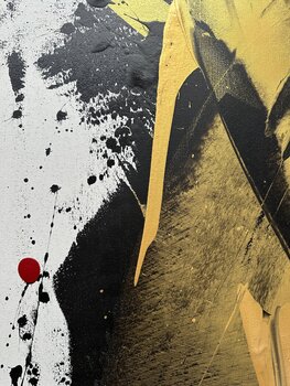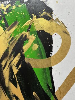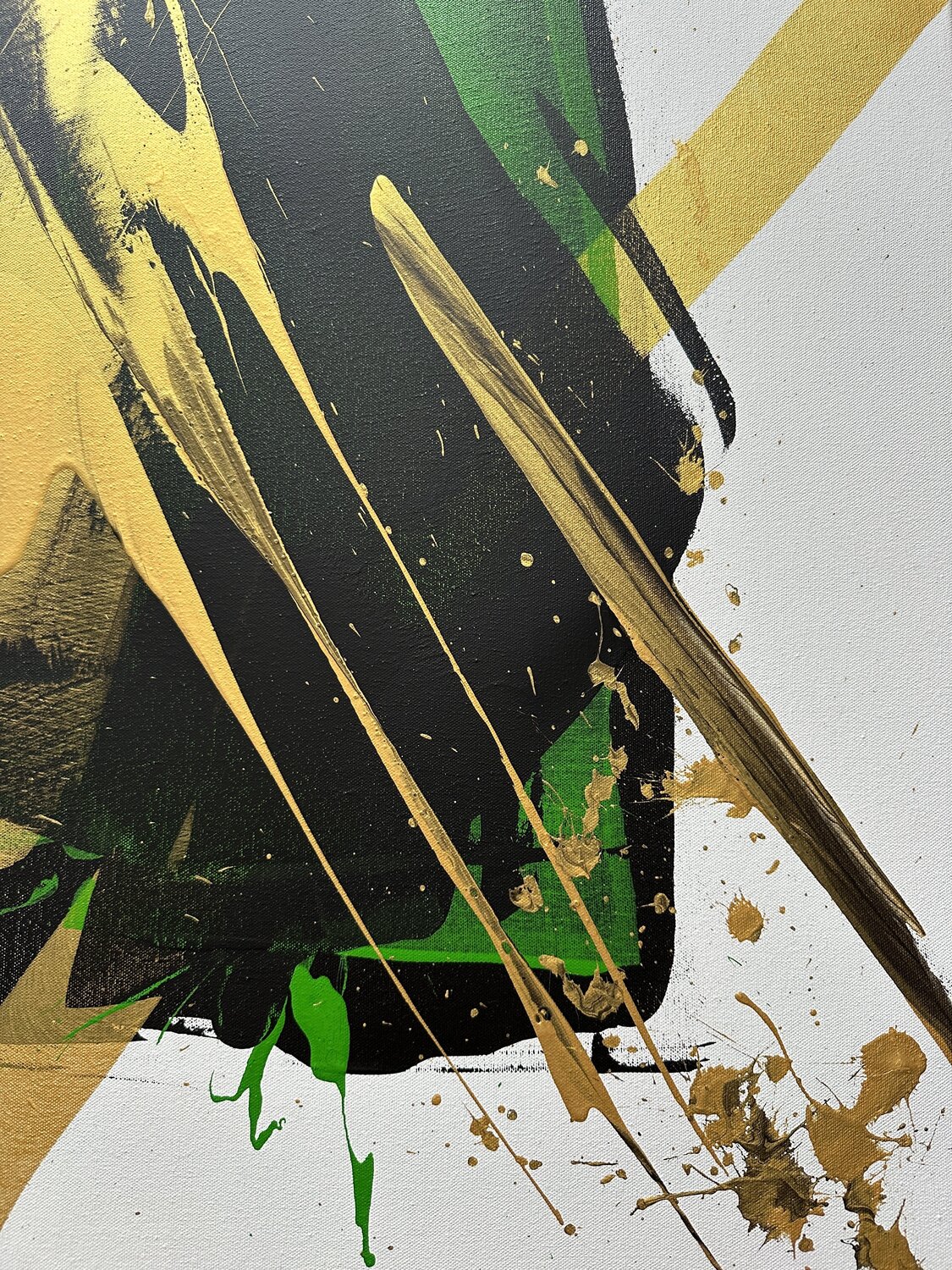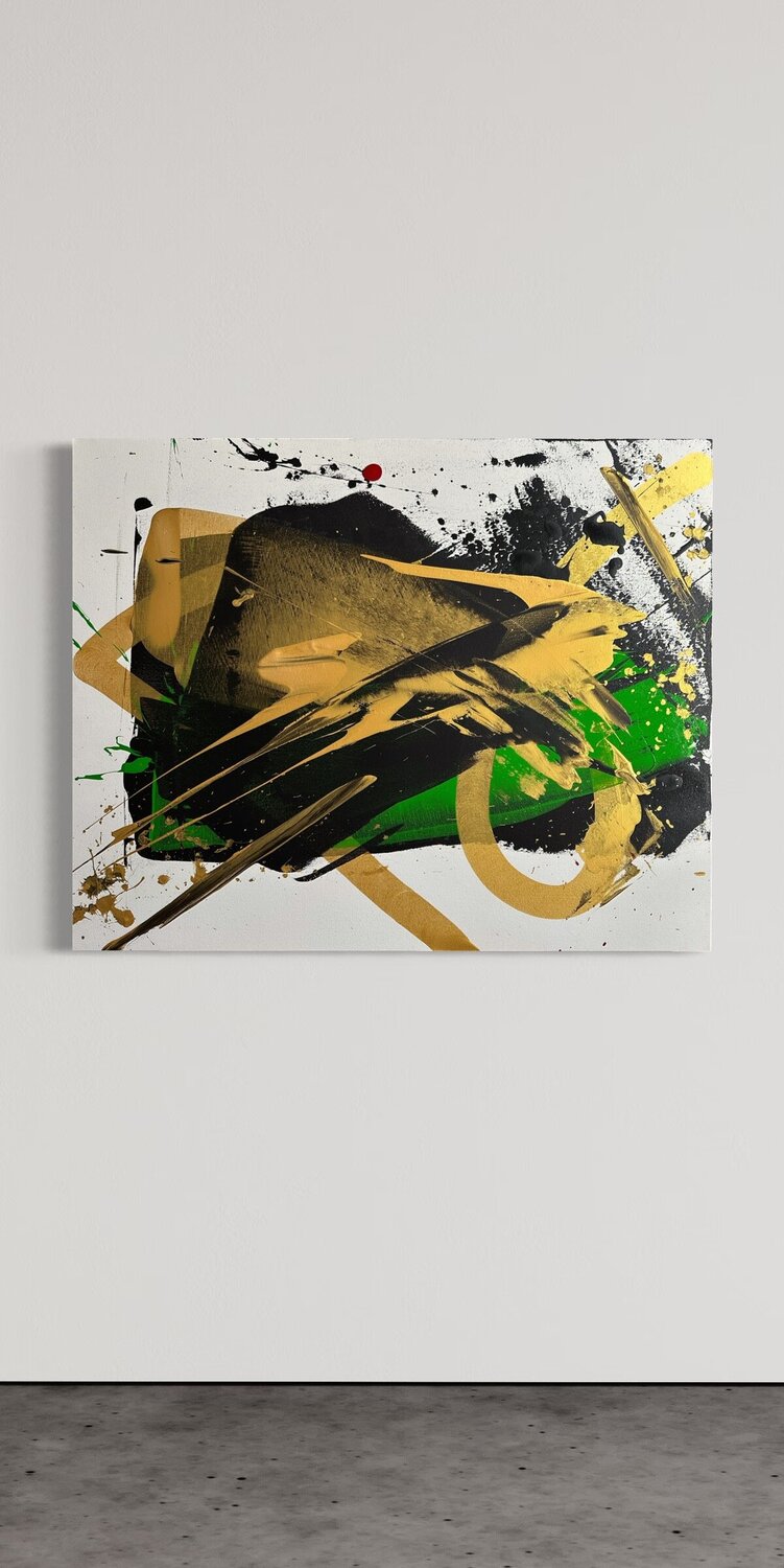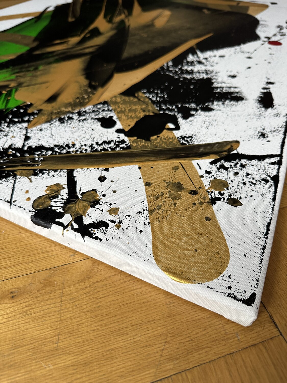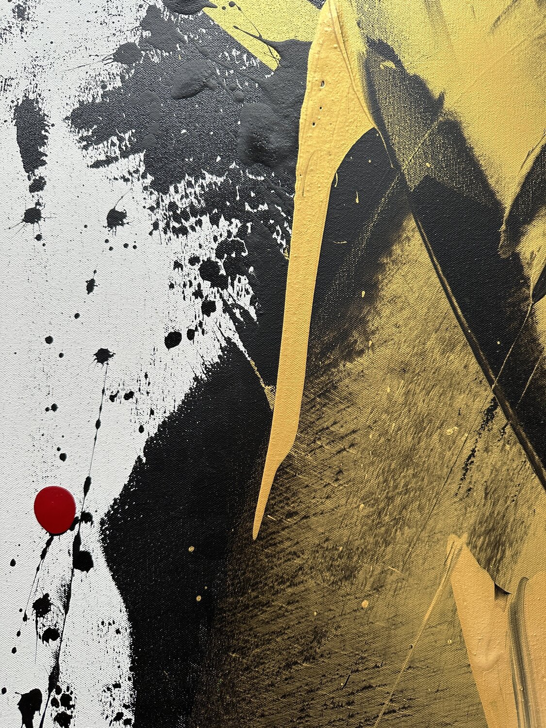 In quest'opera, che ho creato con la spada lunga giapponese "Katana", passione e dinamismo confluiscono, accendendo un fuoco d'artificio di emozioni.
