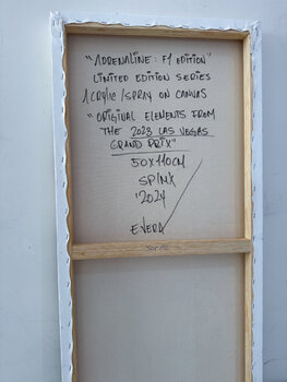 Questa serie di arte moderna contemporanea è una collezione in edizione limitata realizzata con acrilico e vernice spray su tela. Ogni pezzo della serie è progettato in modo unico, incorporando elementi originali del Gran Premio di Las Vegas del 2023, la prima gara di Formula 1 tenutasi in città.