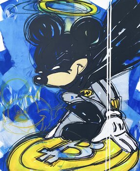 Nel creare questo pezzo, ho cercato di fondere il familiare con l'inaspettato, utilizzando acrilici vibranti e audaci linee a carboncino su uno sfondo di graffiti dallo spirito libero. Sfruttando l'essenza della pop art e degli stili figurativi, ho ritratto un simbolo iconico sotto una nuova luce, impregnandolo di contrasto dinamico e complessità di fondo. Questo dipinto vuole evocare un senso di giocosità e introspezione, un'affermazione visiva… che stimola la conversazione e aggiunge un'ondata di energia creativa a qualsiasi spazio.