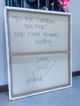 In questa vivida creazione, ho scatenato una vibrante giustapposizione di caos e controllo. Usando acrilici e vernice spray, mi sono immerso nella spontaneità della pop art, ancorando il pezzo con una potente presenza figurativa. È una sinfonia visiva che celebra il superamento della paura, una miscela dinamica di schizzi audaci e tratti intenzionali. Inietterà un'ondata di energia in qualsiasi spazio, incoraggiando gli spettatori ad affrontare le… proprie ombre con coraggio.