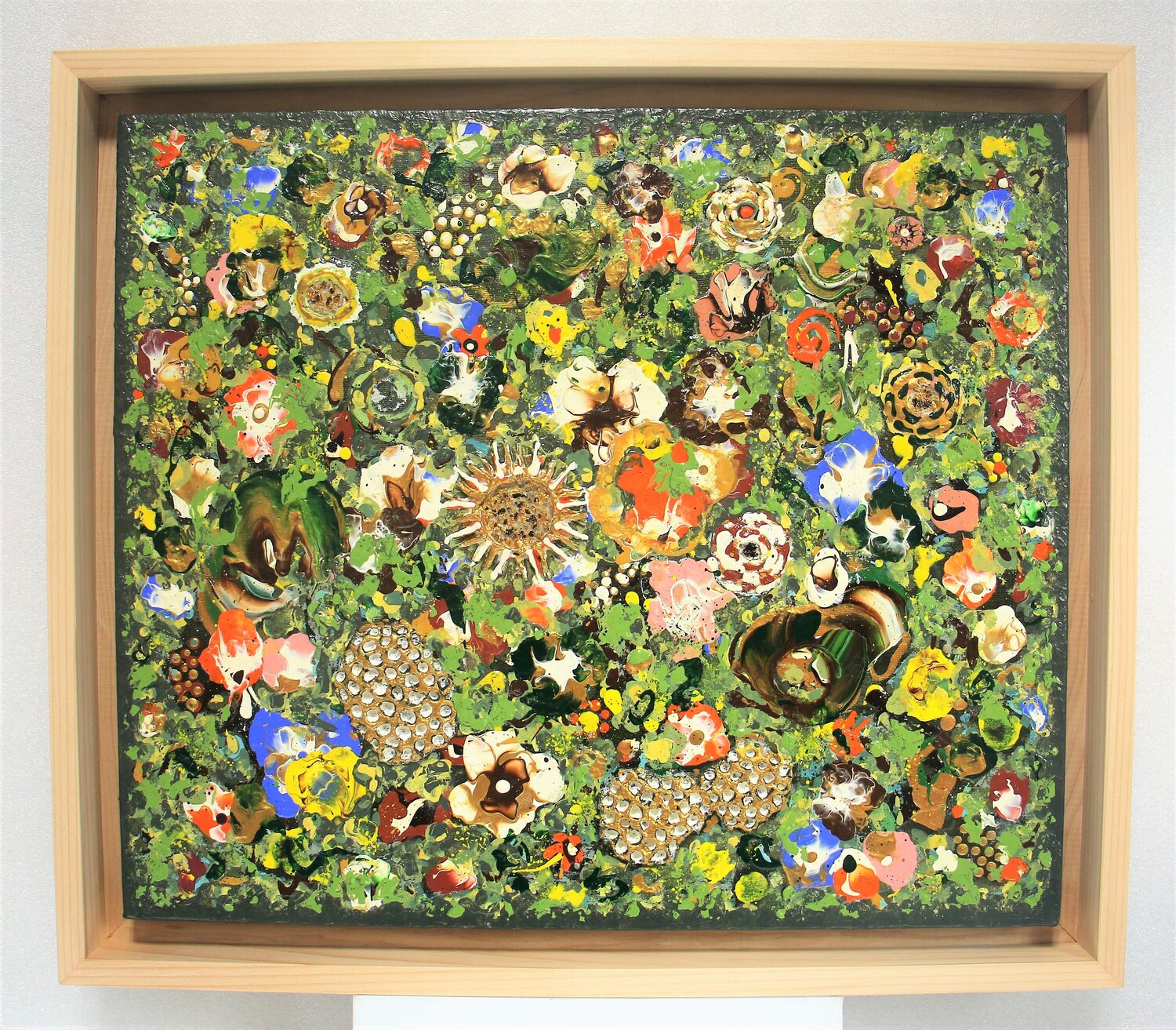 La tela prende vita con una sinfonia di colori e texture, evocando la sensazione delle creature della foresta che percepiscono… il pulsare dell'energia vitale. La composizione allude sottilmente a fiori, semi, cellule e vita microscopica, ognuno dei quali possiede un ritmo unico all'interno di una vasta rete ecologica. L'abile uso degli acrilici da parte dell'artista cattura l'essenza stessa della creazione, dell'estinzione e del flusso ciclico dell'energia della natura. La texture e la pittura fluida incarnano il movimento dell'energia e l'espansione della vita.