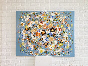 Dipinti con acrilico su tela, i riflessi dell'artista sui… cambiamenti stagionali e sui movimenti ecologici si traducono in una rappresentazione pittorica della continuità della vita e del ritmo della natura. L'armoniosa fusione di colori e texture stratificate incarna l'energia diffusa e la diversità della vita, mentre la composizione circolare simboleggia l'integrità e il flusso costante del ciclo vitale.