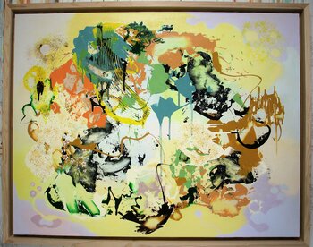 Questo dipinto moderno fa parte di una serie che esplora la vitalità della natura. L'artista si concentra sull'energia invisibile che scorre tra la natura e noi. L'idea alla base è quella di ripristinare il nostro legame con la natura, che si perde facilmente nel frenetico mondo odierno.