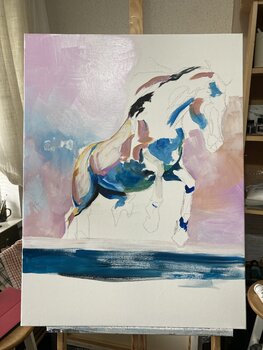 La composizione complessiva emana un senso di libertà,… determinazione e l'assoluta bellezza dell'abilità dello stallone.