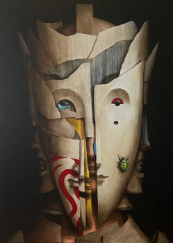 Fabien Delaube è un pittore pluripremiato le cui opere sono state esposte in Francia, Belgio, Germania, Canada e Cina. L'artista francese è affascinato dal simbolo della maschera, la maschera che tutti indossano, così come da ciò che nascondono. L'effetto specchio conferito dai pezzi di Delaube rafforza la vera natura dei suoi soggetti. Spesso inizia le sue composizioni con l'acrilico, finendo con olio, patina e pasta.
