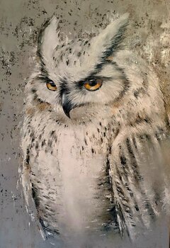 In quest'opera ho voluto catturare l'essenza mistica e l'intensità dello sguardo del gufo, simbolo di saggezza e profondità. Utilizzando oli per arricchire le texture e le sfumature del suo piumaggio, ho cercato di rendere omaggio alla bellezza selvaggia e contemplativa di questo straordinario animale. Questo dipinto è un invito a immergersi nella calma introspettiva, portando una presenza calmante e stimolante in ogni spazio.