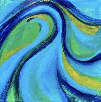 In quest'opera ho catturato il potere fluido dell'acqua e della terra. Con blu intensi e gialli vibranti, ho voluto esprimere movimento e vita. Rappresenta l'essere radicati nella natura, ma al contempo liberi di fluire. Quest'immagine infonde calma ed energia positiva in qualsiasi spazio e invita a immergersi e sognare.