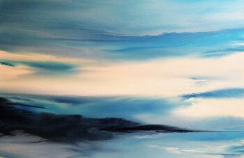 In questo dipinto acrilico astratto ho catturato la vastità del cielo e la calma del mare per trasmettere una sensazione di pace e fiducia. Quest'opera d'arte vuole essere un'oasi di silenzio e ispirazione in ogni stanza.