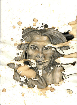 In quest'opera, catturo il misterioso legame tra caso e coscienza. Le macchie di caffè simboleggiano pensieri ed emozioni fugaci che, allo stesso tempo, turbano e plasmano l'immagine nitida di noi stessi. Utilizzando acquerello e matite colorate, creo un'atmosfera che invita alla riflessione sull'identità e sulla transitorietà. L'immagine dona un'energia vibrante e contemplativa a qualsiasi spazio alla ricerca di profondità.
