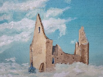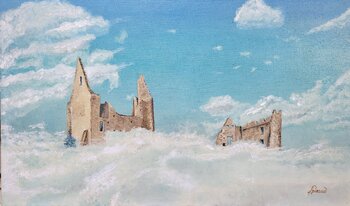 In quest'opera, ho mescolato il realismo delle rovine con l'evanescenza delle nuvole, per creare un sogno sospeso tra cielo e terra. La morbidezza dell'olio, con tocchi impressionisti, dà vita a questo universo sospeso, dove l'immaginazione si rifugia nel tangibile. Questo dipinto invita a sognare e porta con sé un'atmosfera pacifica e misteriosa, perfetta per ispirare i vostri interni con un'energia leggera e contemplativa.