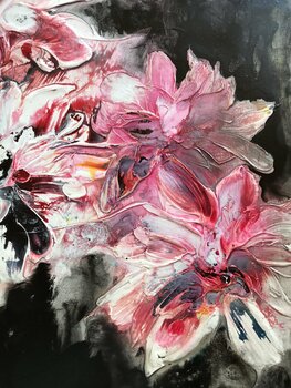L'impulso per la creazione di questo dipinto è il film "Singin 'in the rain", del 1952. Nella canzone eseguita da Gene Kelly canta ballando e spensierato il fatto che canta nonostante la pioggia perché è felice. È innamorato e questo sentimento cambia tutto il suo mondo, compreso quello che lo circonda. L'artista ha realizzato artisticamente questa euforia, queste emozioni esuberanti, che per le persone sembrano sbocciare in questo dipinto, il cui… titolo è un omaggio alla canzone. La potente opera d'arte affascina con lo sfondo nei toni del nero e del grigio, da cui i fiori opulenti, dipinti con potenti pennellate, che rappresentano il mondo emotivo degli innamorati, sembrano protendersi verso lo spettatore. Sul lato destro dell'immagine, lo spettatore nota due fiori più piccoli che l'artista ha creato in delicati toni di grigio e giallo, simboli per gli amanti che si protendono l'uno verso l'altro nell'abbondanza dei loro sogni.