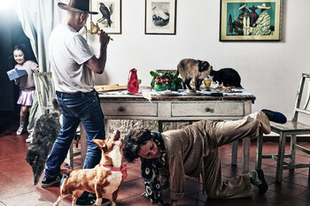 Francesco Majo è un artista visivo italiano che opera all'incrocio tra fotografia e messa in scena cinematografica. La sua pratica consiste nel costruire scene accuratamente composte in cui animali, oggetti e gesti umani diventano metafore della vita contemporanea. Unendo ironia e introspezione, il suo lavoro esplora temi come l'identità, il consumo e il comportamento sociale attraverso narrazioni simboliche, spesso surreali. Attingendo a un linguaggio visivo influenzato dal cinema e dalla performance, ogni immagine funziona come un momento sospeso – teatrale e al contempo profondamente umano – che esplora il comportamento umano attraverso immagini costruite e simboliche. "Uso la fotografia in posa come strumento per tradurre concetti astratti". I suoi progetti sono stati riconosciuti in festival cinematografici internazionali, a conferma di una pratica che si muove fluidamente tra immagine fissa e in movimento. Lavorando principalmente in edizioni limitate di 10 esemplari, Majo crea opere fotografiche da collezione che invitano alla riflessione pur rimanendo visivamente immediate e accessibili.
