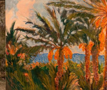 Ho preso in prestito uno stile da Sorolla e Sargent per rappresentare un palmeto da datteri retroilluminato appena a sud di Palm Springs, in California, dove vivo.