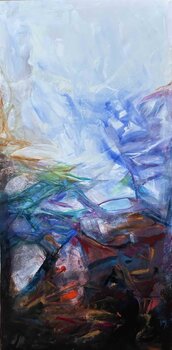 In questo dipinto ho espresso il tumulto interiore e la ricerca di equilibrio attraverso vortici di colore e forme in movimento. L’uso di acrilico e olio mi ha permesso di creare un contrasto palpabile tra delicatezza e intensità. Vorrei che chiunque lo osservi senta l’energia vibrante di un viaggio verso la luce, portando un senso di profondità e riflessione in ogni ambiente.