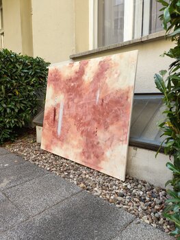 La mia tavolozza di colori e i miei motivi cambiano a seconda del luogo, dando vita a dipinti astratti multistrato che oscillano tra strutture geometriche chiare e forme libere e fluide.