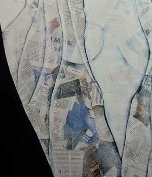 Friedrich Wurm ha avvolto questa donna, la giornalista, in un collage di giornali e riviste. Il cappotto di questo collage dona al corpo un fascino tutto particolare, non copre tutto, ma non mostra nemmeno tutto. L'immagine nasconde così segreti che si possono solo intuire.
